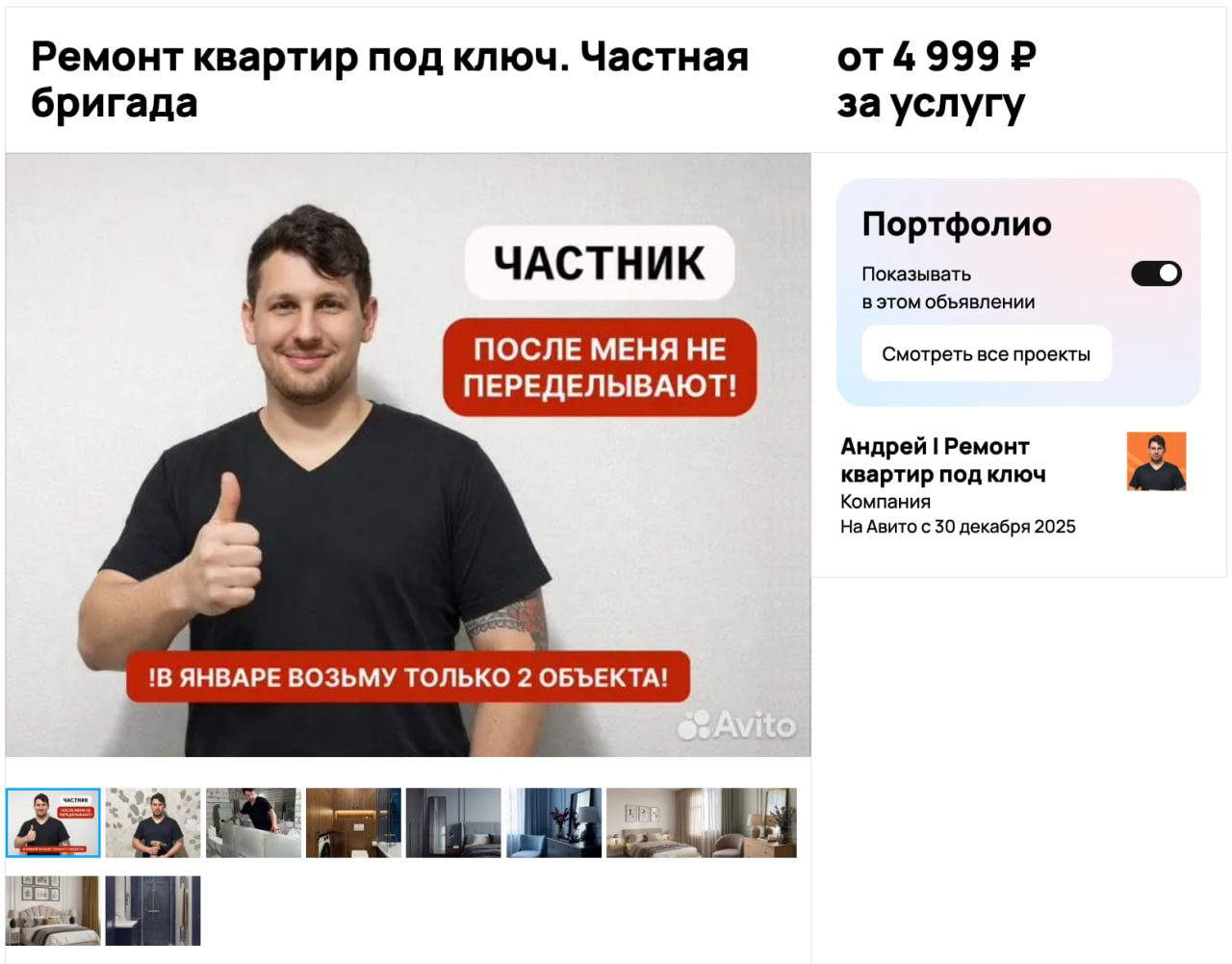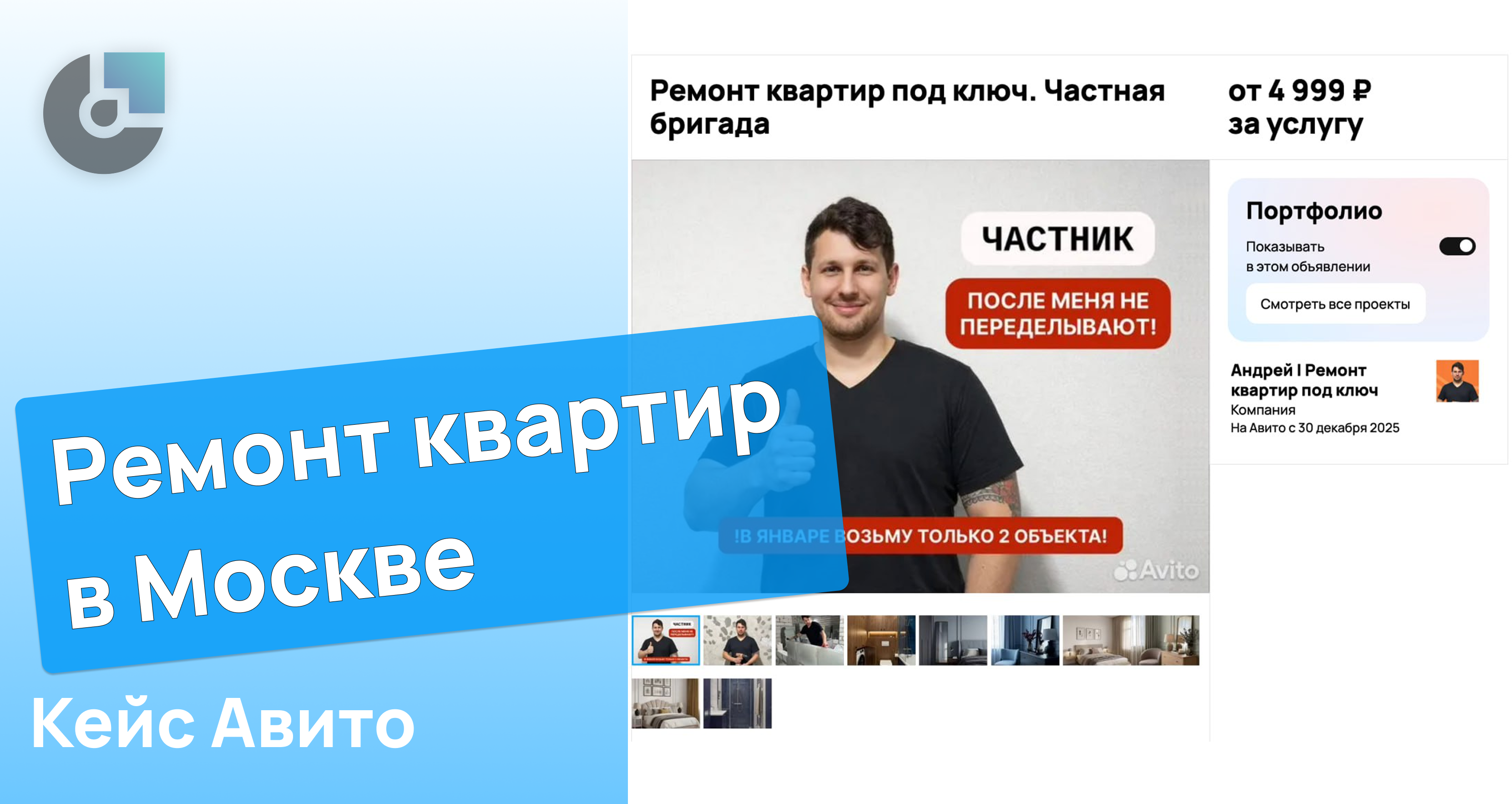 Андрей - подрядчик по ремонту квартир в Москве. Недавно прошёл профильное обучение, собрал небольшую команду и начал самостоятельно привлекать клиентов через Авито.