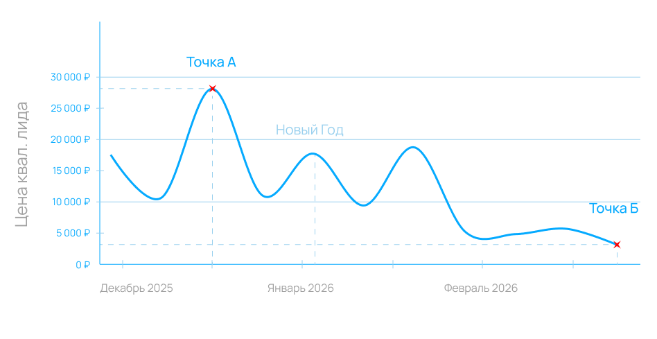 Цель: 30 квалифицированных лидов до 9 000 рублей.