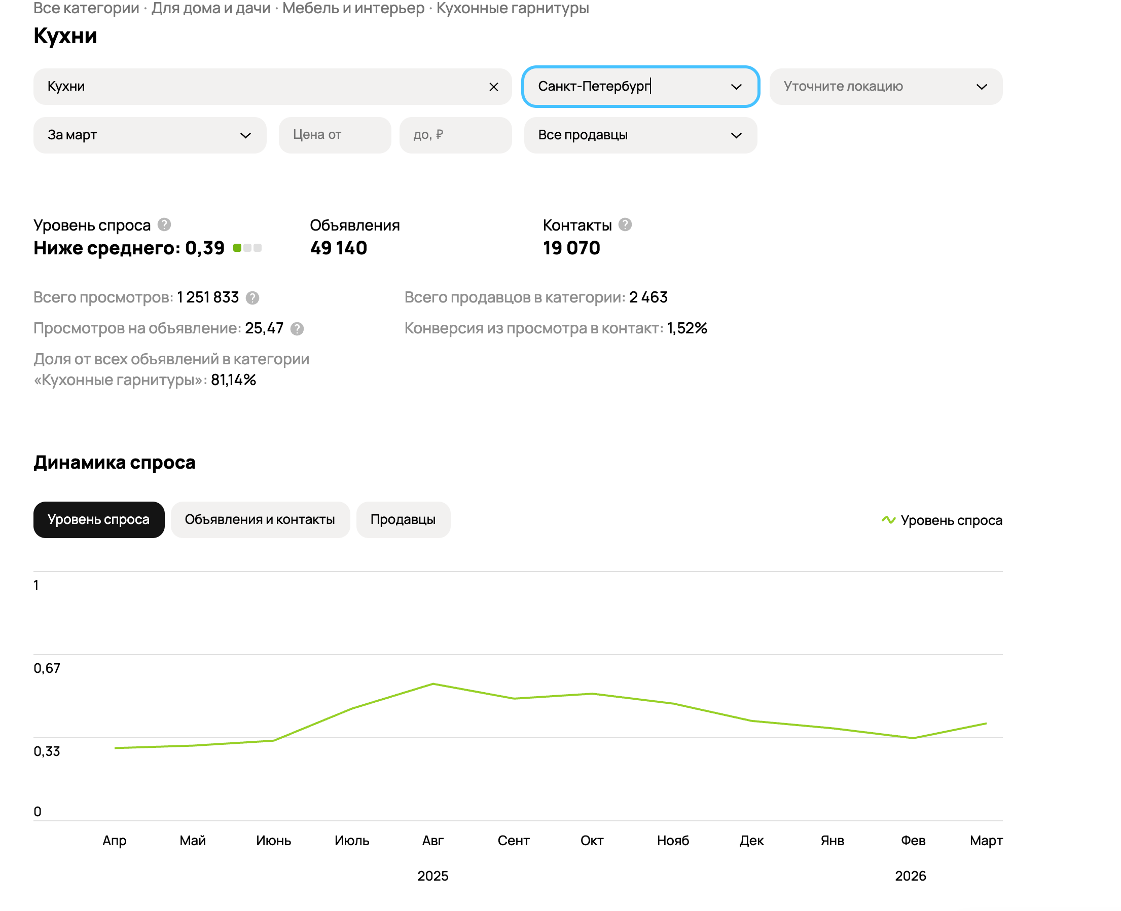 Размещаемся в товарах с тарифом CPX Promo (настройка цены просмотра) в категории "Кухни"